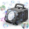Premium Material & LED Light The bubble maker is made of durable and non-toxic ABS plastic, safe for kids, adults, dogs and pets. The bubble machine has 2 blue LED lights, which makes it more atmosphere at night and is perfect for your child’s birthday party.