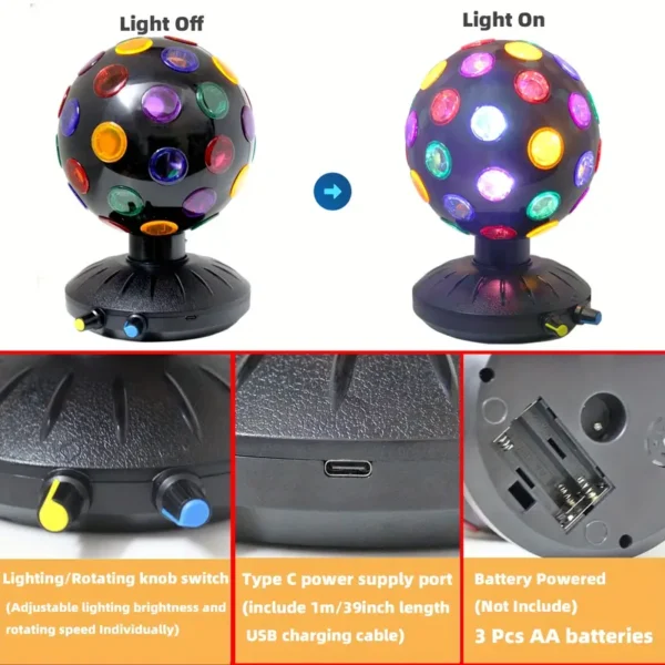 [Halloween] Spinning Disco Ball LED Night Light, DJ Light Projector 360° Rotary Speed/Brightness Adjustable Disco Lamp, For Stress Reliever, Parties, Lighting, Halloween, Christmas, Birthday, Holiday, Club, Bar Upgraded Version (USB/Battery Operation)