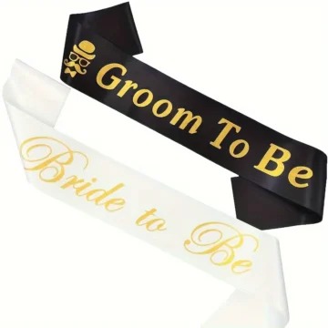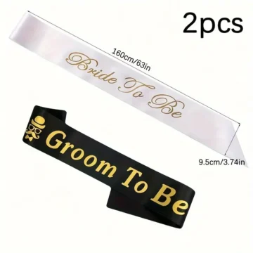 2PCS/Set Elegant Wedding Sashes – Fashionable Bride to Be & Groom to Be Shoulder Bands for Bachelor & Bachelorette Party, Bridal and Groom Shower Ceremony Accessories with Luxurious Touch and Adjustable Design
