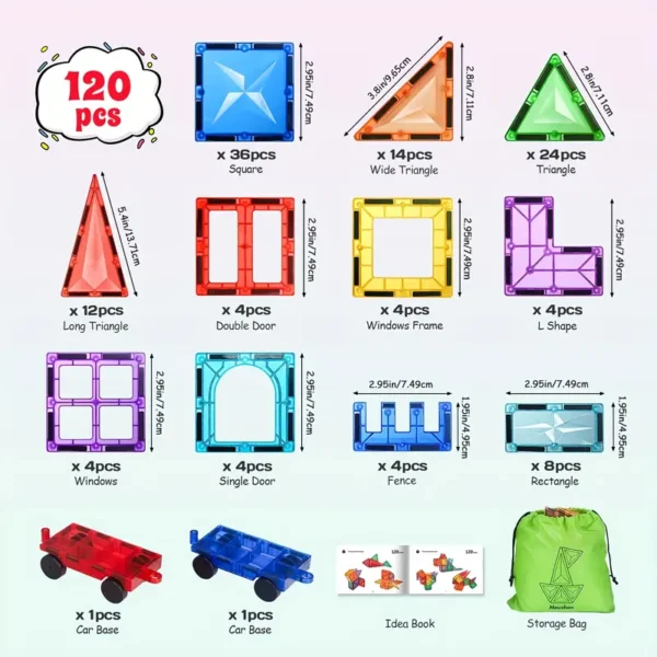 [Halloween] 120PCS Deluxe Magnetic Tiles with 2 Cars Toy Set, 3D Diamond Magnet Tiles Building Blocks, Montessori Toys for 3 – 8 Years, STEM Preschool Kids Sensory Educational Toys halloween, christmas gift