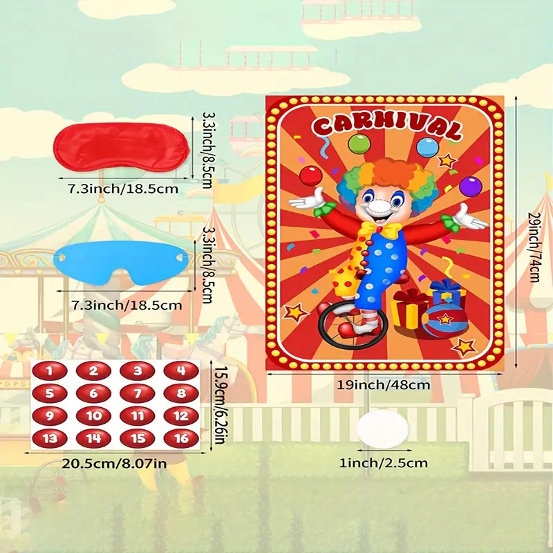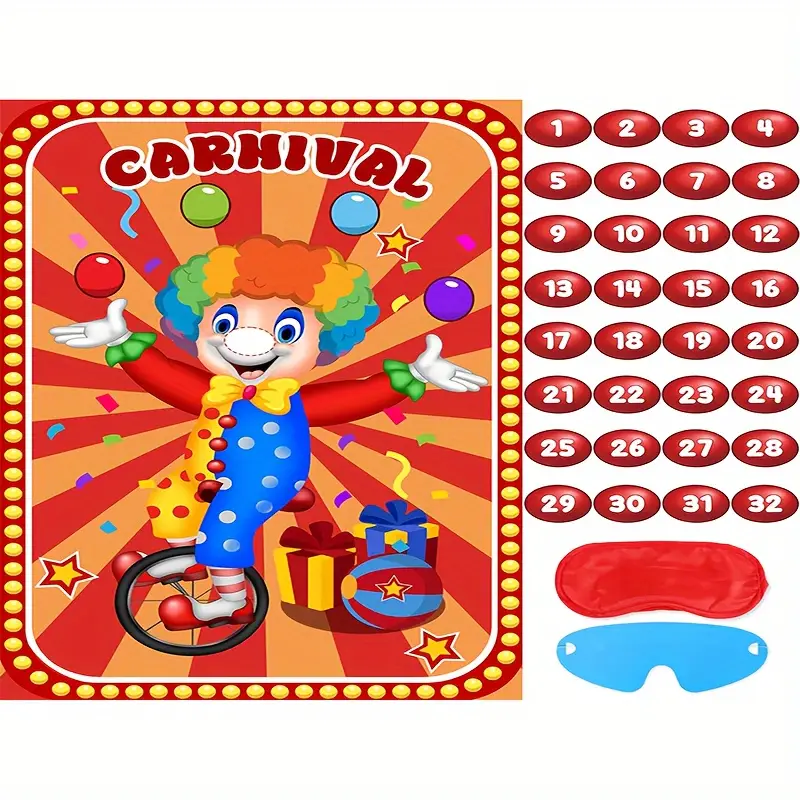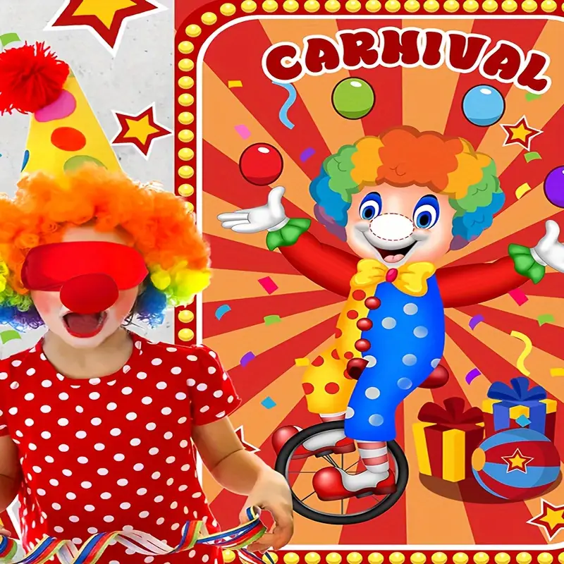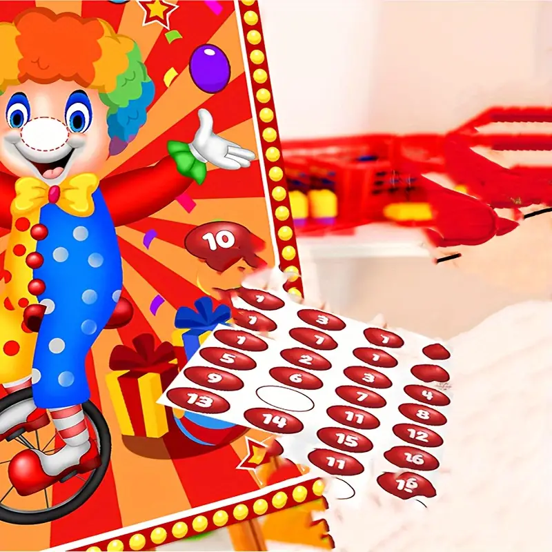 41pcs Carnival Circus Party Game Set – Pin The Nose On The Clown Sticker Tail Games, Perfect For Birthday & Family Fun, Includes Large Poster & Stickers, Ideal For Ages 14+