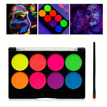 Glow-in-the-Dark Body Paint Kit – 3pcs Fluorescent Face & Body Makeup Set with Brush, Quick-Dry Water-Based Cosmetics in Mixed, Pink, Green, Yellow Shades