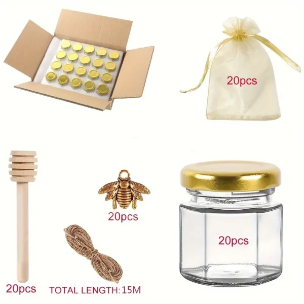 101-Piece Glass Honey Jars with Dipper – Golden Lids, Bee Pendants, Jutes, and Thank You Cards – Perfect for Baby Shower Favors, Wedding Favors, Party Favors