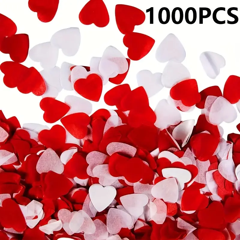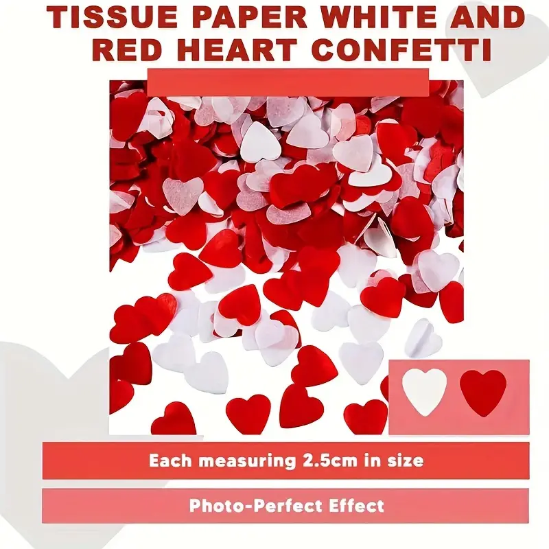 1000pcs/Pack Vibrant White and Red Heart-Shaped Tissue Paper Confetti for Romantic Valentines Day, Wedding, Party, Gift, Home, and Atmosphere Decorations