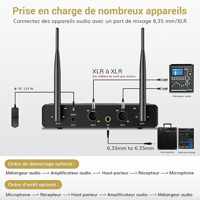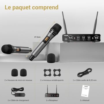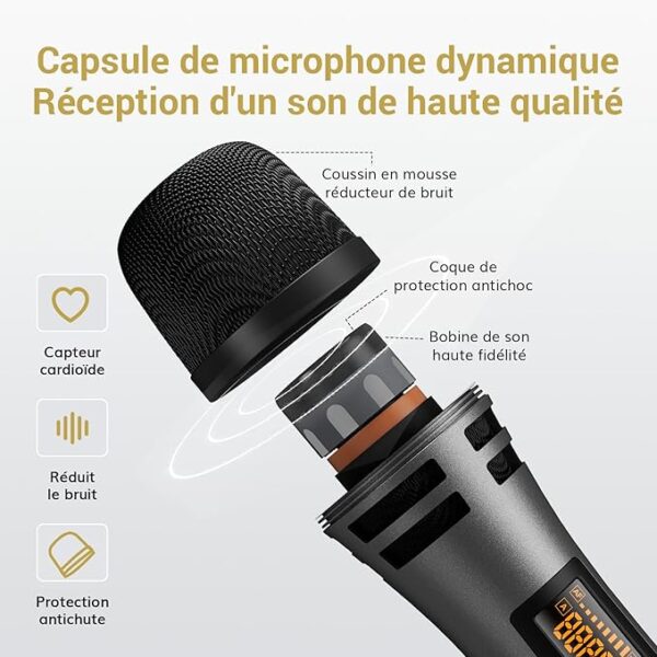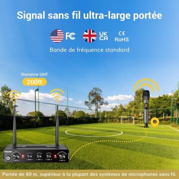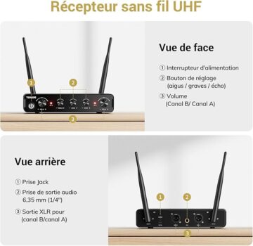 【WIRELESS WIDE RANGE】Our receiver allows you to move freely during your performance with the karaoke microphone thanks to a range of 60 meters (without obstacles), making it perfect for indoor and outdoor events such as family karaoke, church gatherings, weddings, meetings or conferences. Enjoy unrestricted performance and presentation with this system
